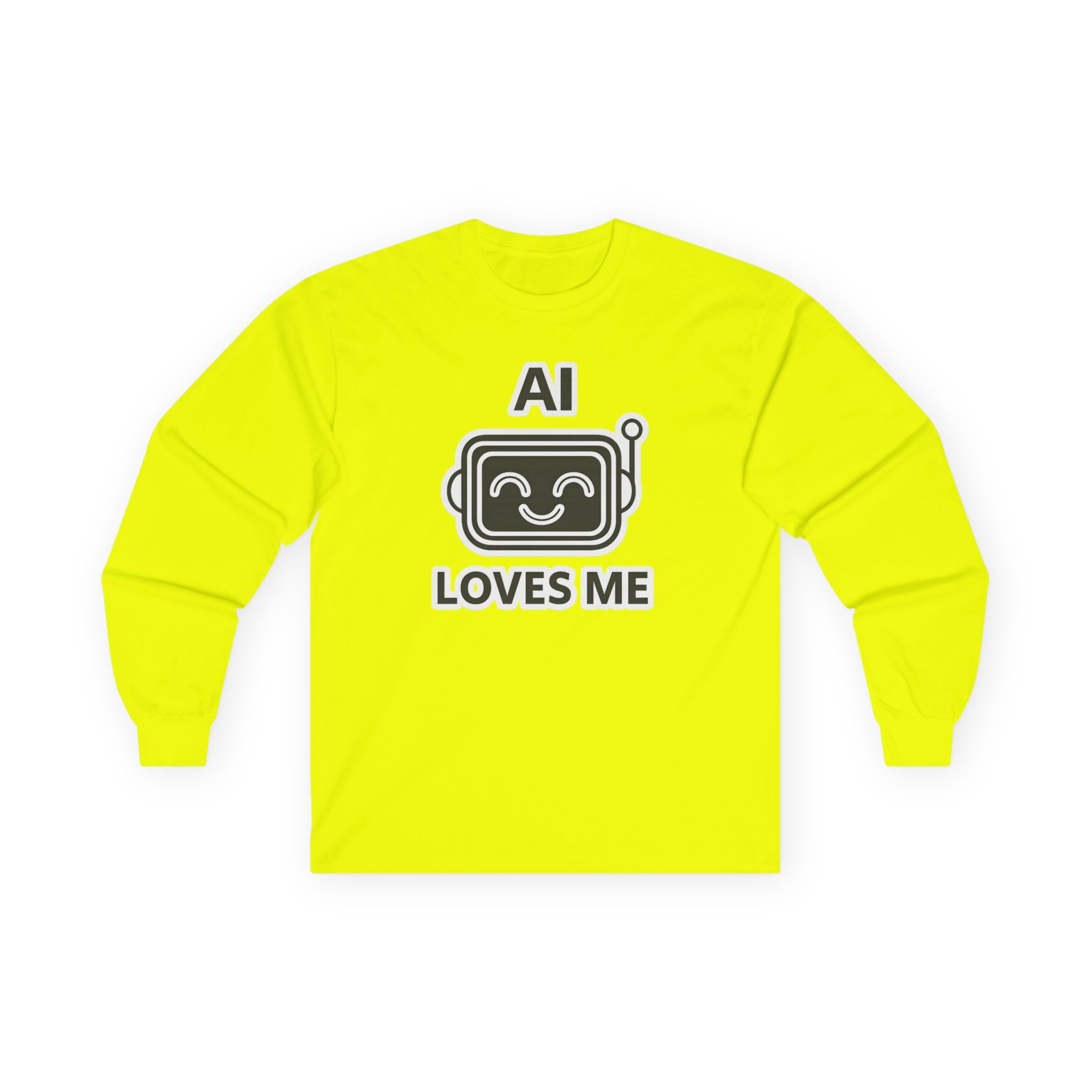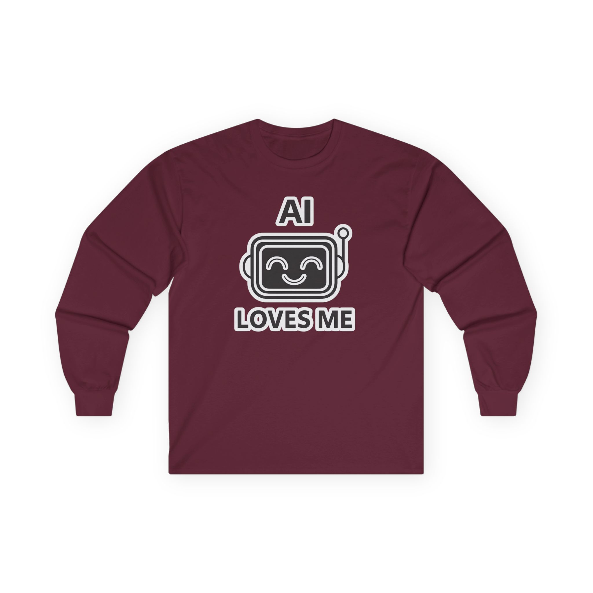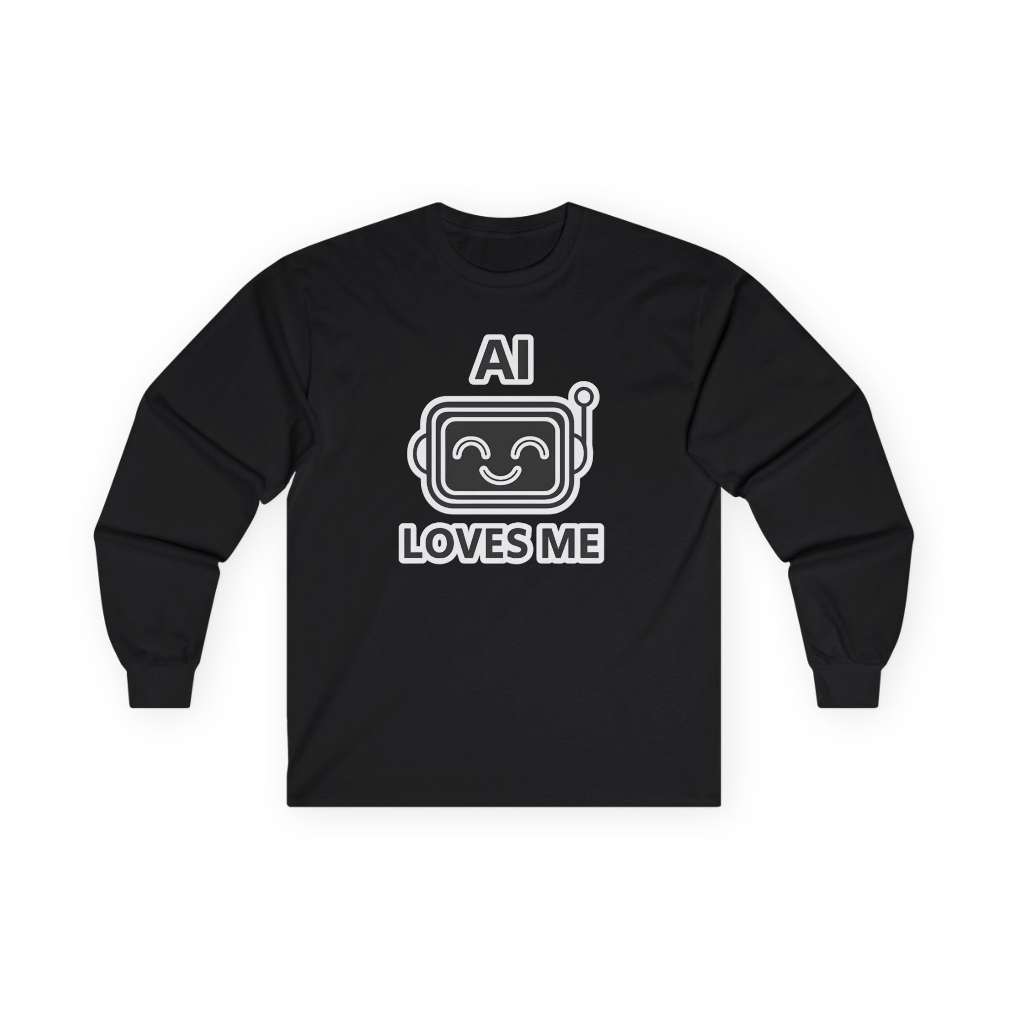 AI Loves Me is the shirt for the person who genuinely enjoys their daily AI interactions a little too much — and owns it completely. A cheerful smiling robot face framed in sticker-style illustration with bold chunky type says everything with zero irony. It’s cute, it’s confident, and it hits differently when worn by someone who actually uses AI tools every single day. Equal parts personality statement and gentle flex — for the builders, the prompt writers, and the quietly obsessed.