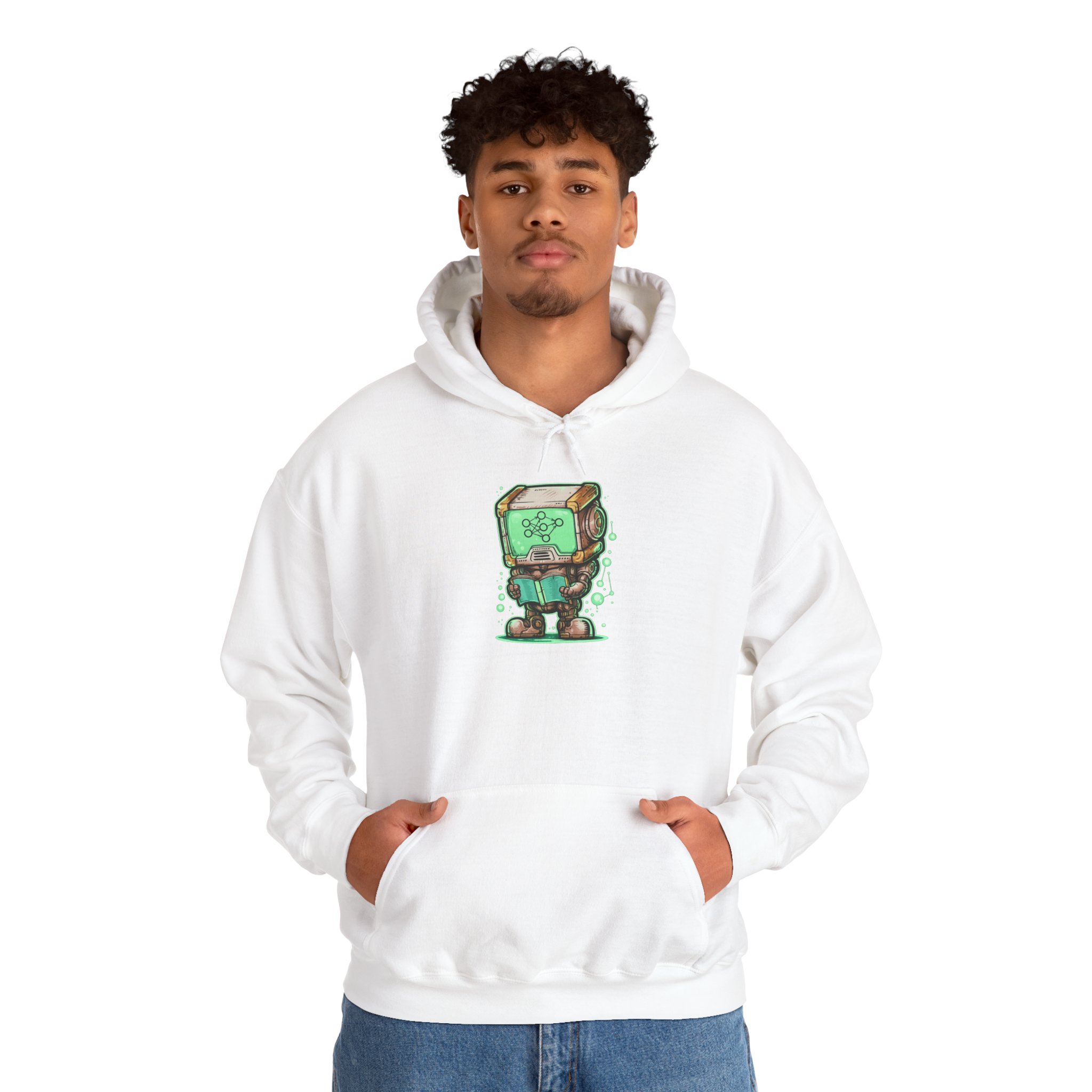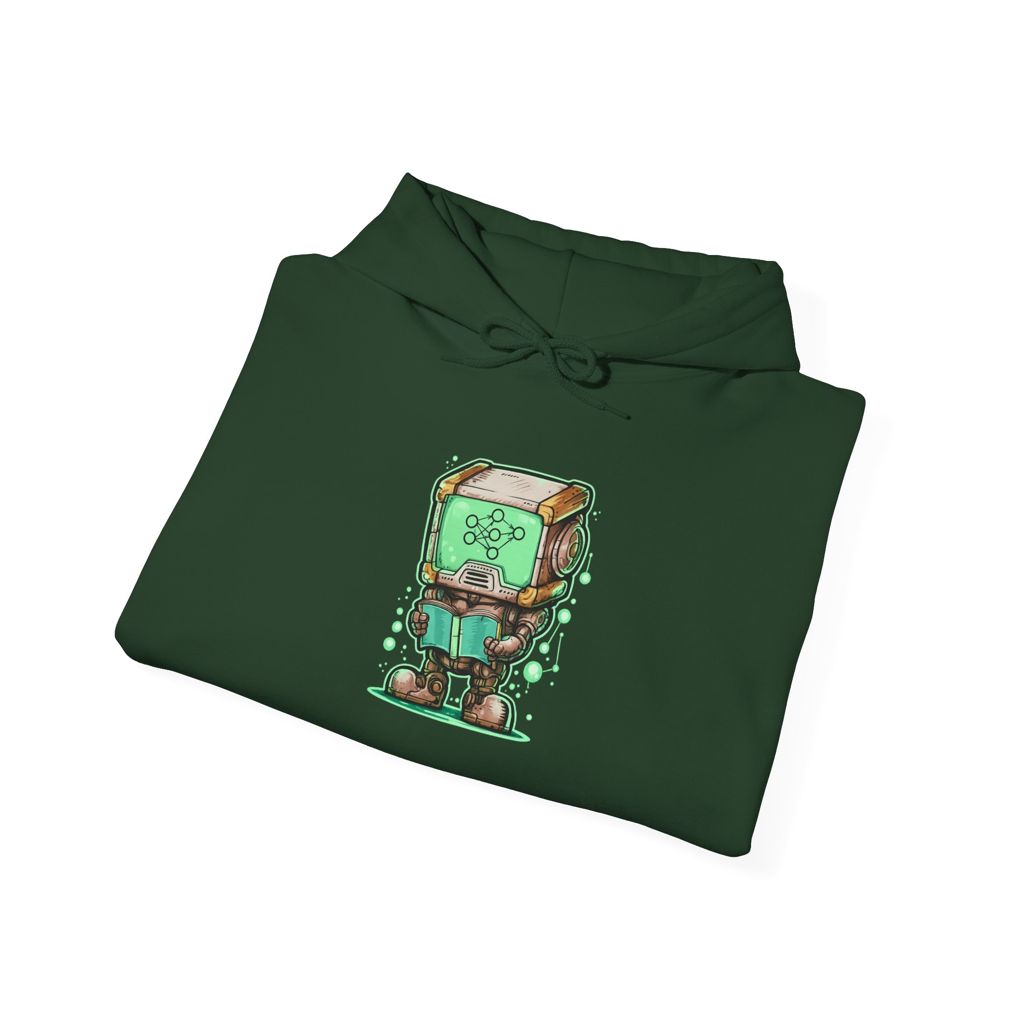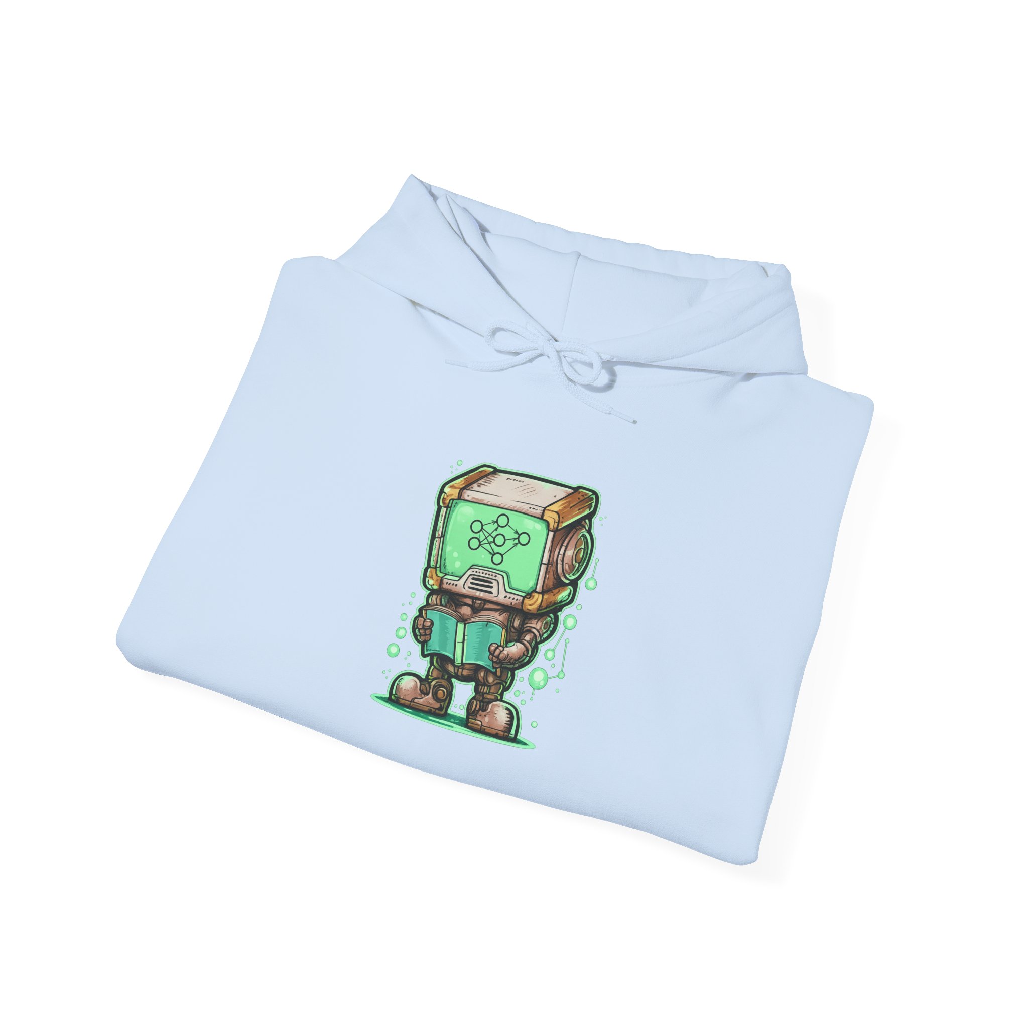 This glowing retro robot — stocky, focused, neural network lighting up its screen-face — is mid-training and completely unbothered. The illustration blends old-school sci-fi charm with the visual language of modern machine learning: nodes, connections, data flowing in real time. It’s a design that feels like it belongs on the wall of a university AI lab AND looks genuinely great on a shirt. Detailed enough to reward a close look, bold enough to read across a room. Made for the people who think training models is genuinely exciting — not just a job.