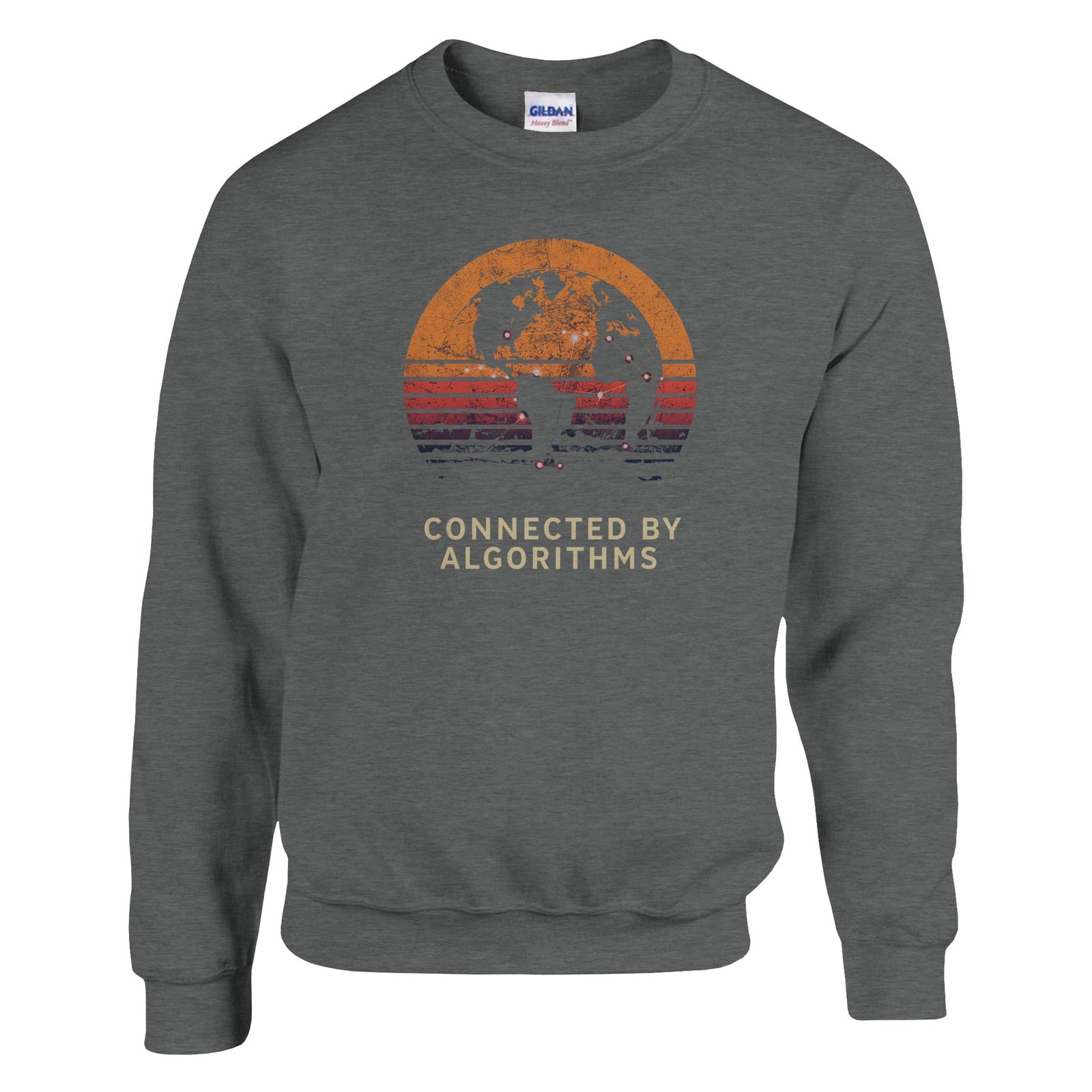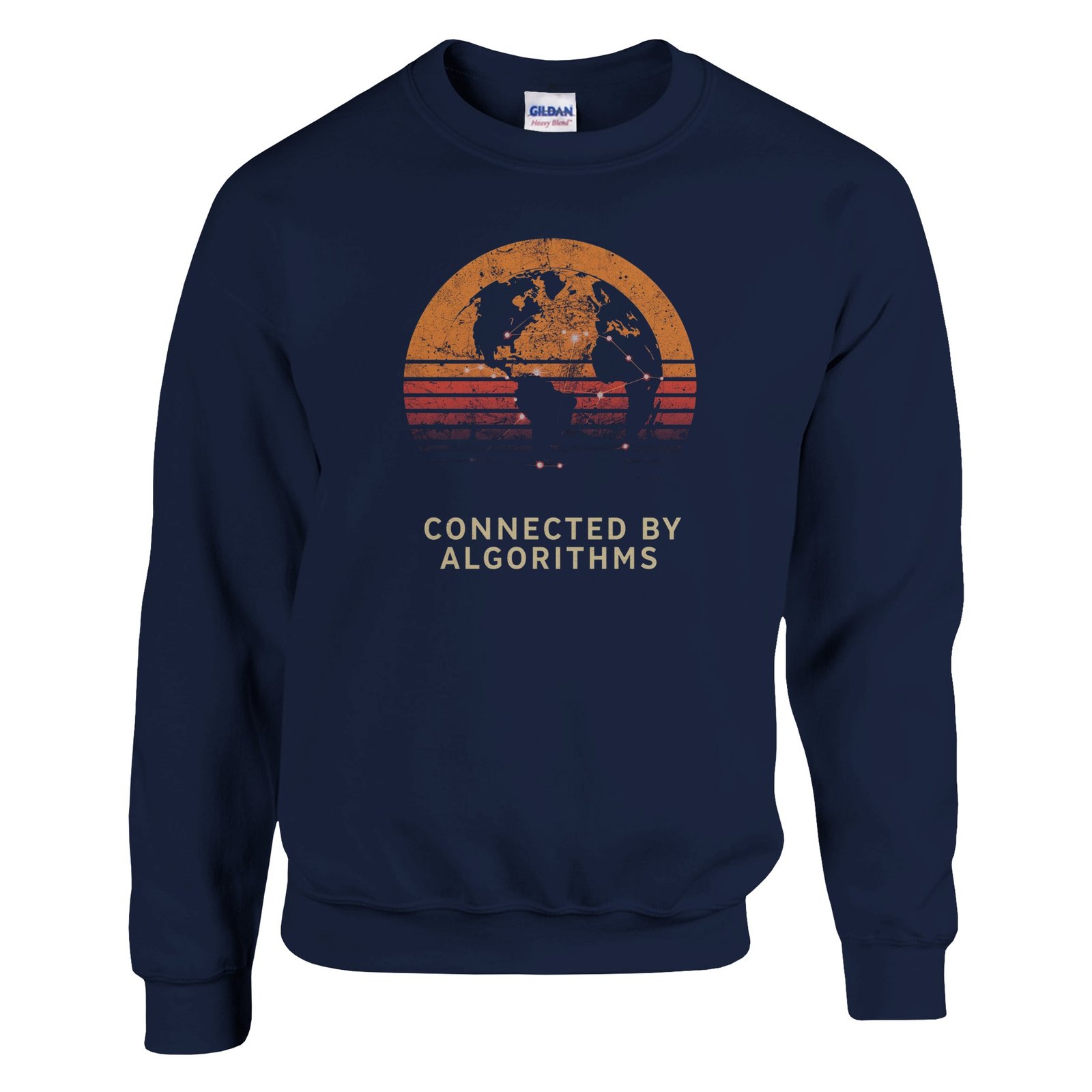 Celebrate the power of connectivity with this retro AI globe silhouette design. With its “Connected by Algorithms” slogan, this shirt is ideal for tech enthusiasts, AI fans, and anyone who lives in the digital age.