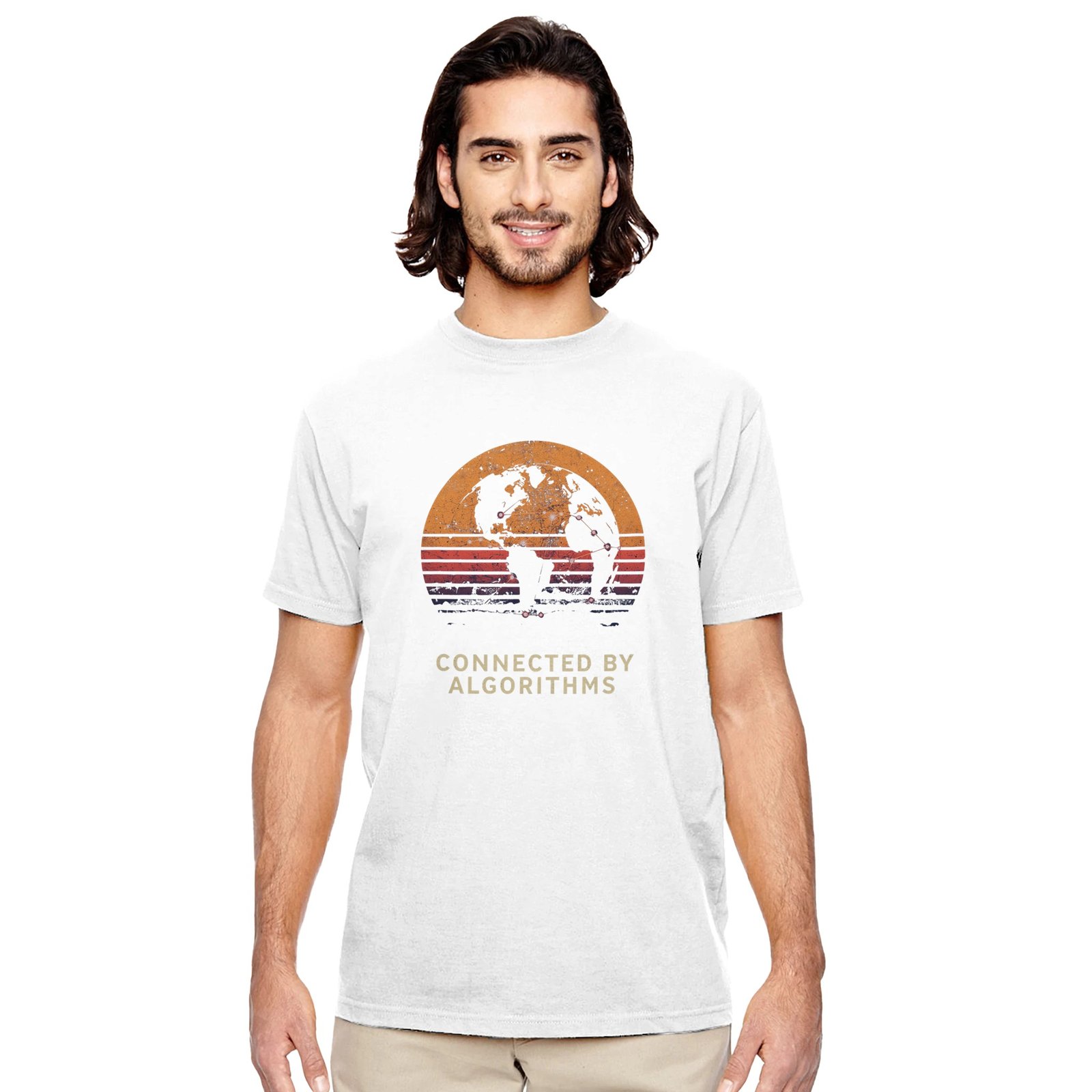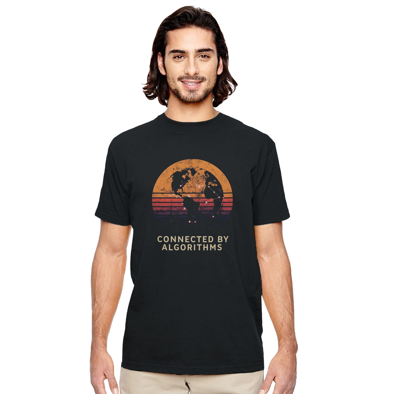 Celebrate the power of connectivity with this retro AI globe silhouette design. With its “Connected by Algorithms” slogan, this shirt is ideal for tech enthusiasts, AI fans, and anyone who lives in the digital age.