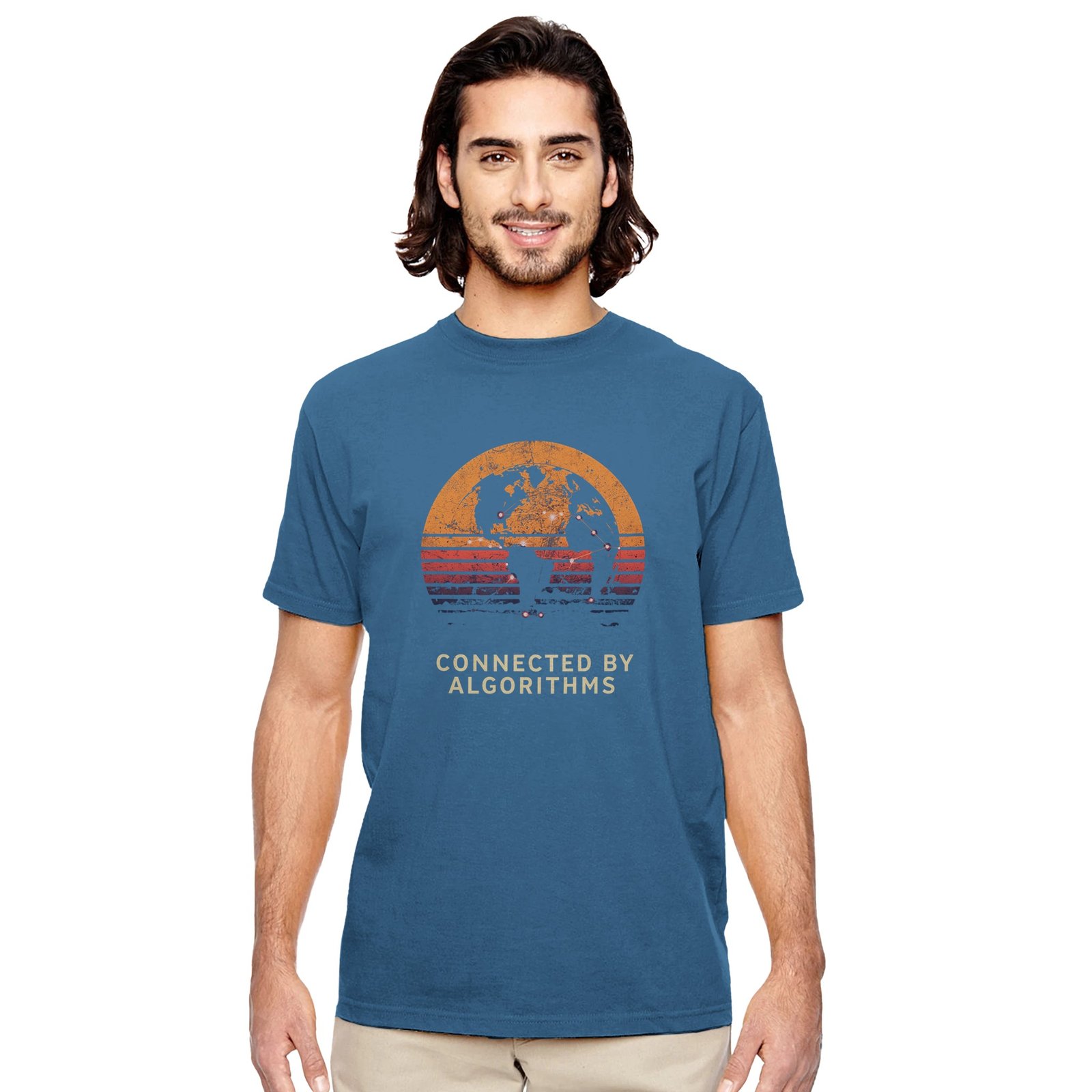 Connected by Algorithms | AI Network Globe Retro Organic Unisex Crewneck T-shirt | Econscious EC1000