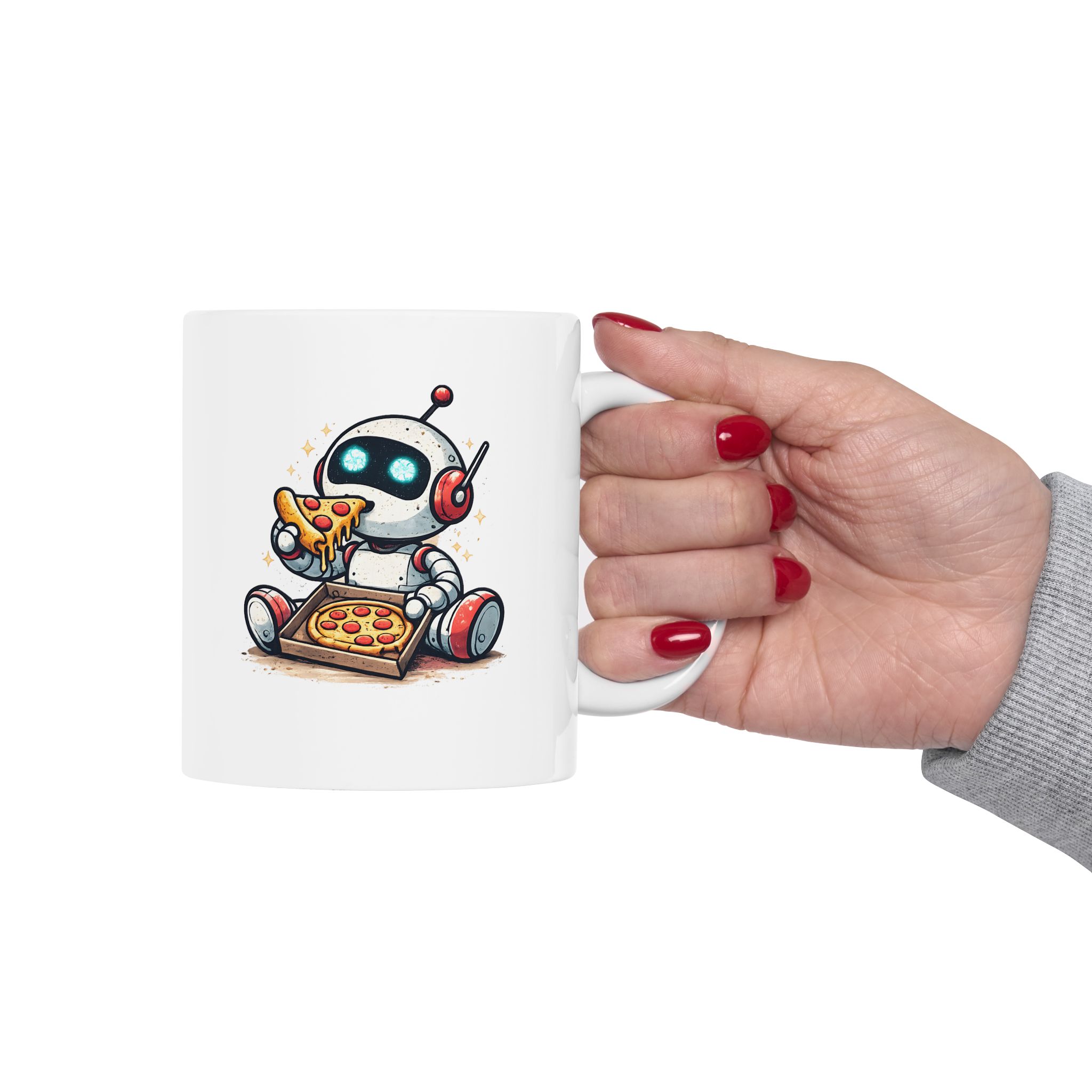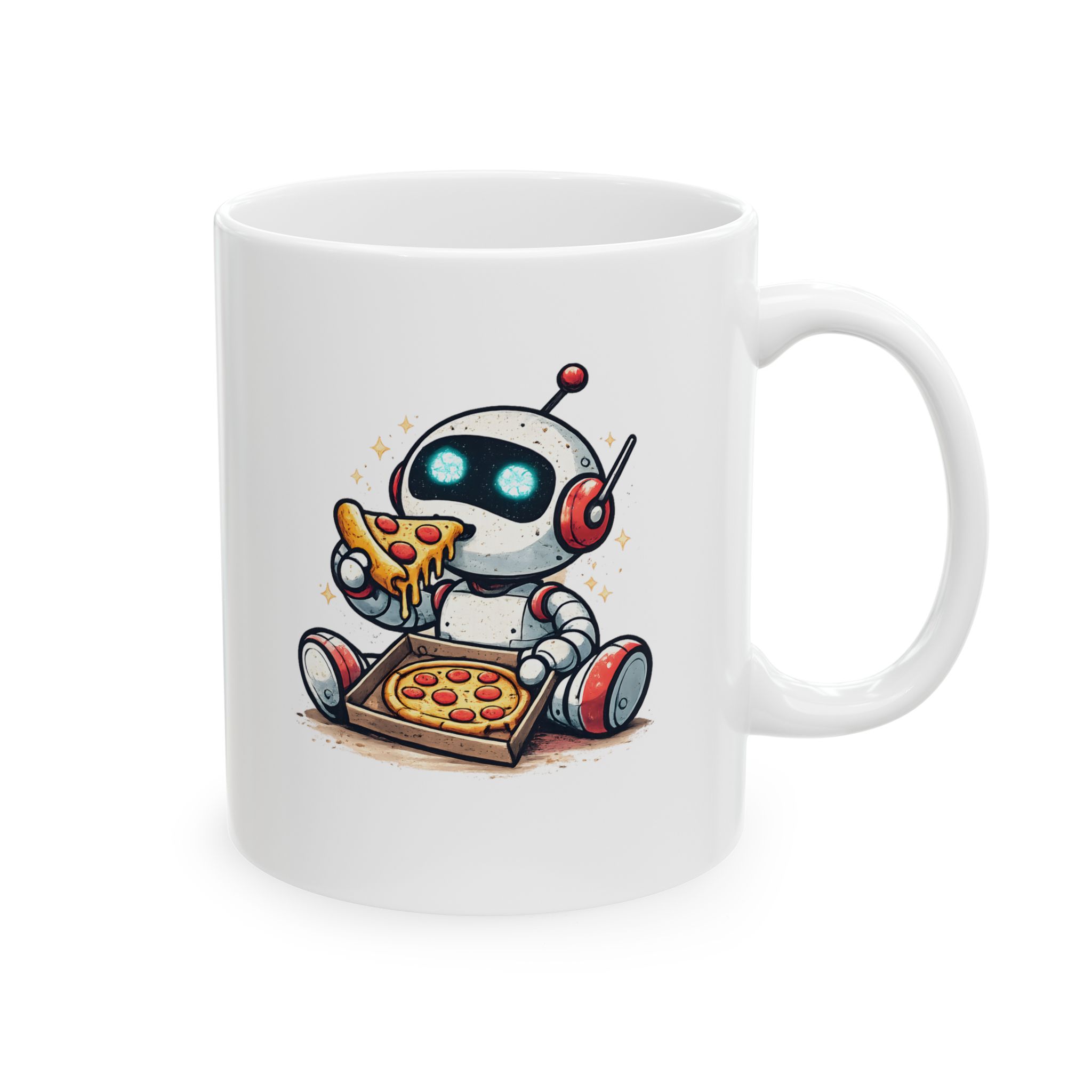 Cute Robot Eating Pizza — Funny AI Tech Lover’s Coffee Mug (11oz, 15oz)