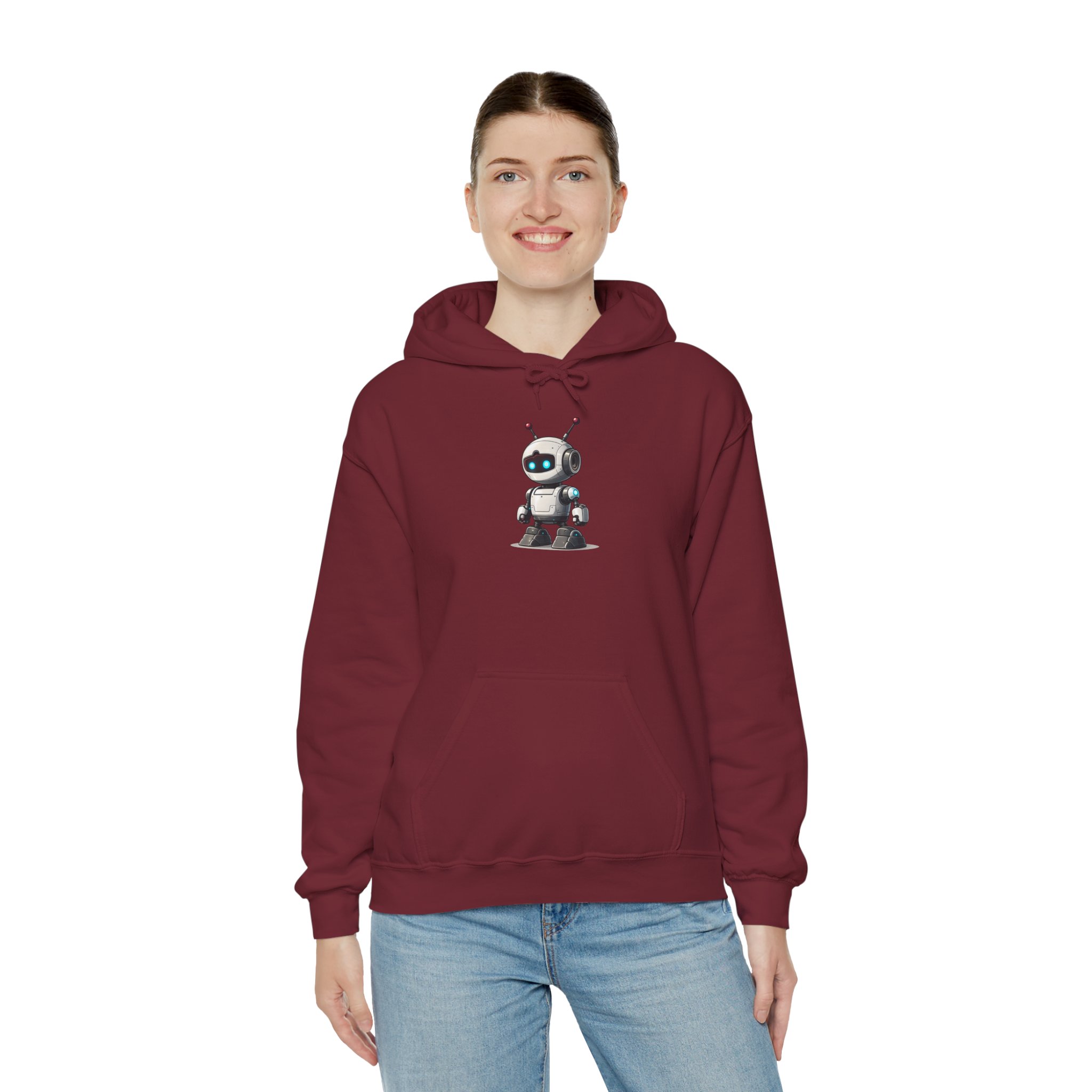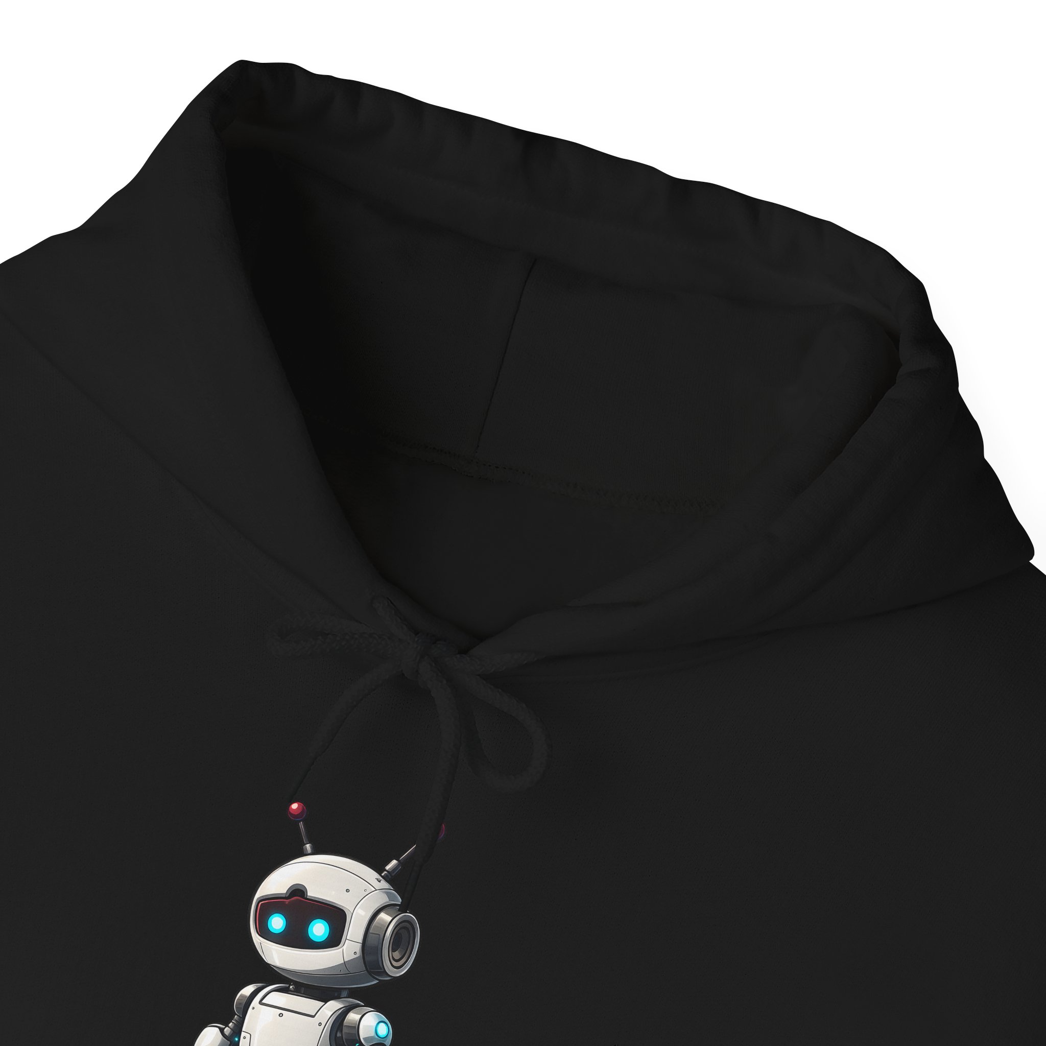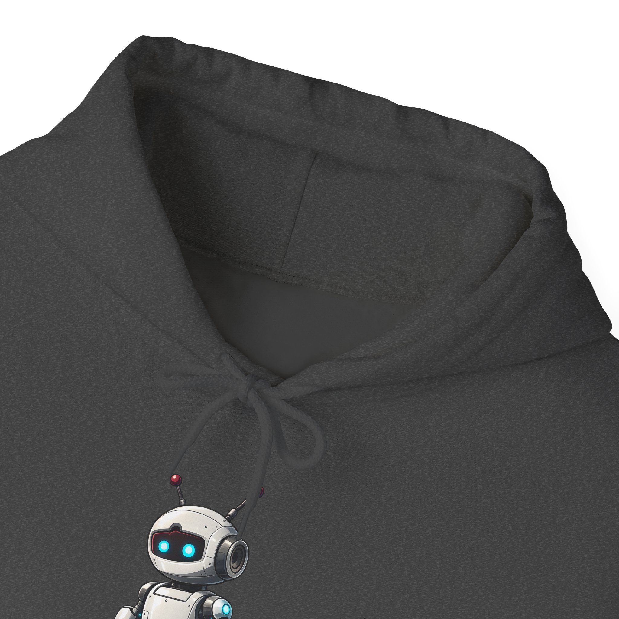 Pull the hood up. The robot on the front already has the situation assessed. This hoodie is for the developer, the gamer, and the tech enthusiast who wants a character on their chest that matches their energy — calm, capable, and quietly running several processes simultaneously.