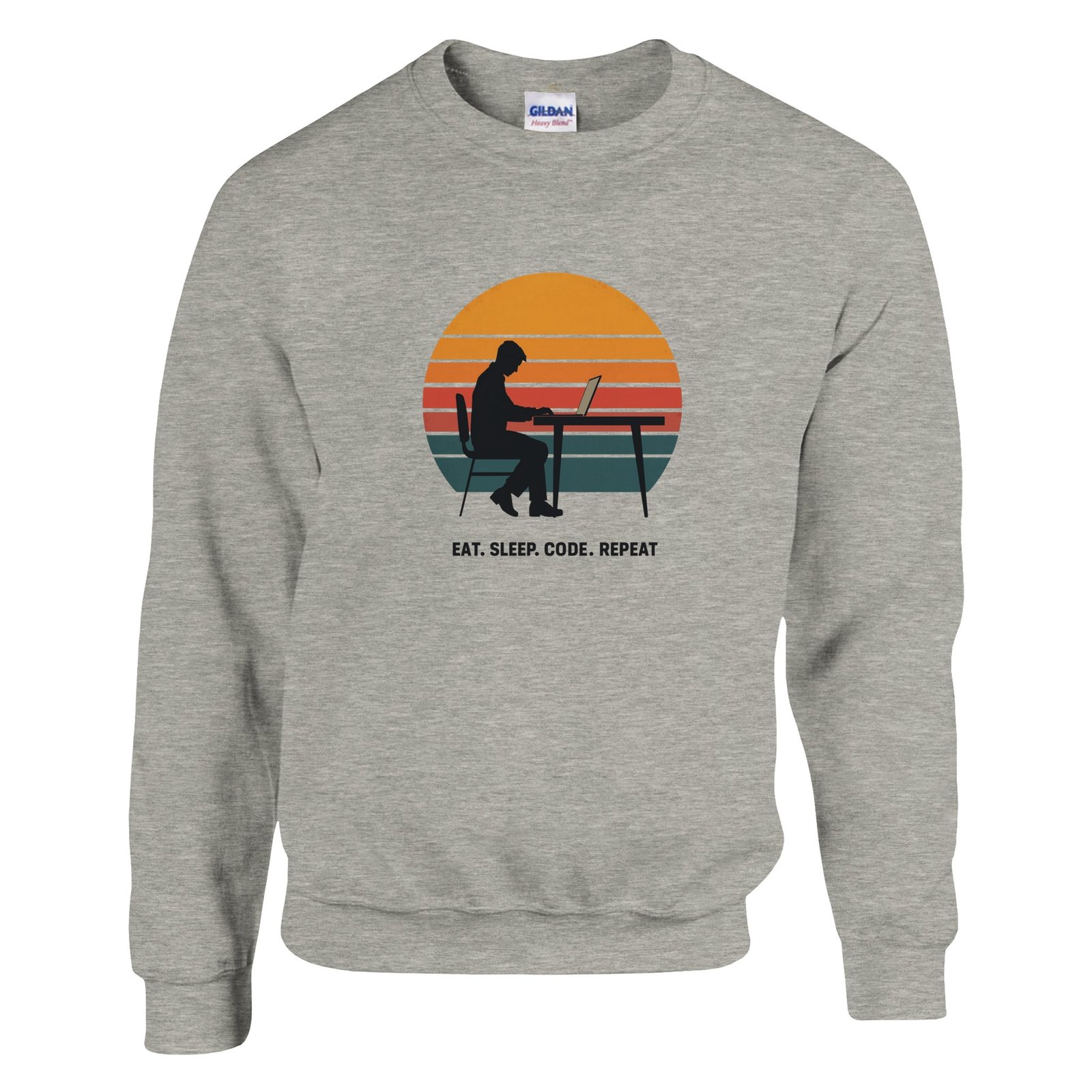 Eat Sleep Code Repeat | Programmer Silhouette Retro Classic Unisex Crewneck Sweatshirt | Gildan® 18000