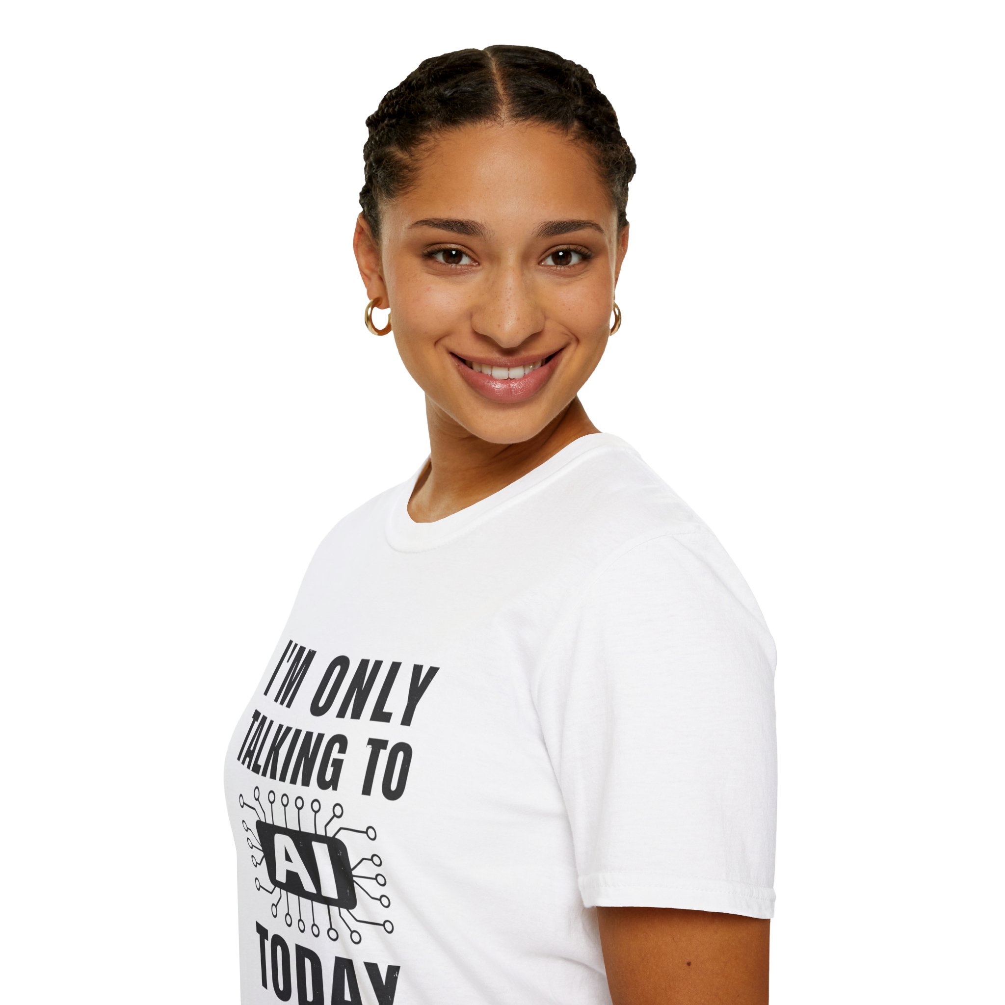 I’m Only Talking to AI Today is the wearable out-of-office message for anyone who’s chosen a ChatGPT conversation over small talk — and would do it again without hesitation. Bold distressed block typography frames a circuit-chip AI icon that says everything your facial expression already does. It’s dry, it’s honest, and it hits differently when worn at a tech conference full of people you’re actively avoiding. The perfect uniform for developers, AI researchers, remote workers, and professional introverts everywhere.