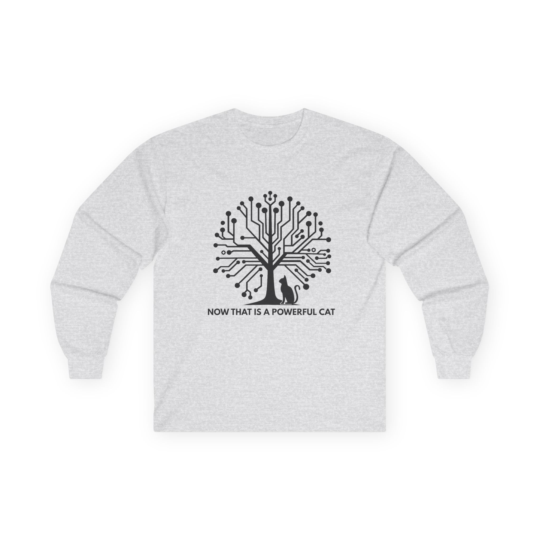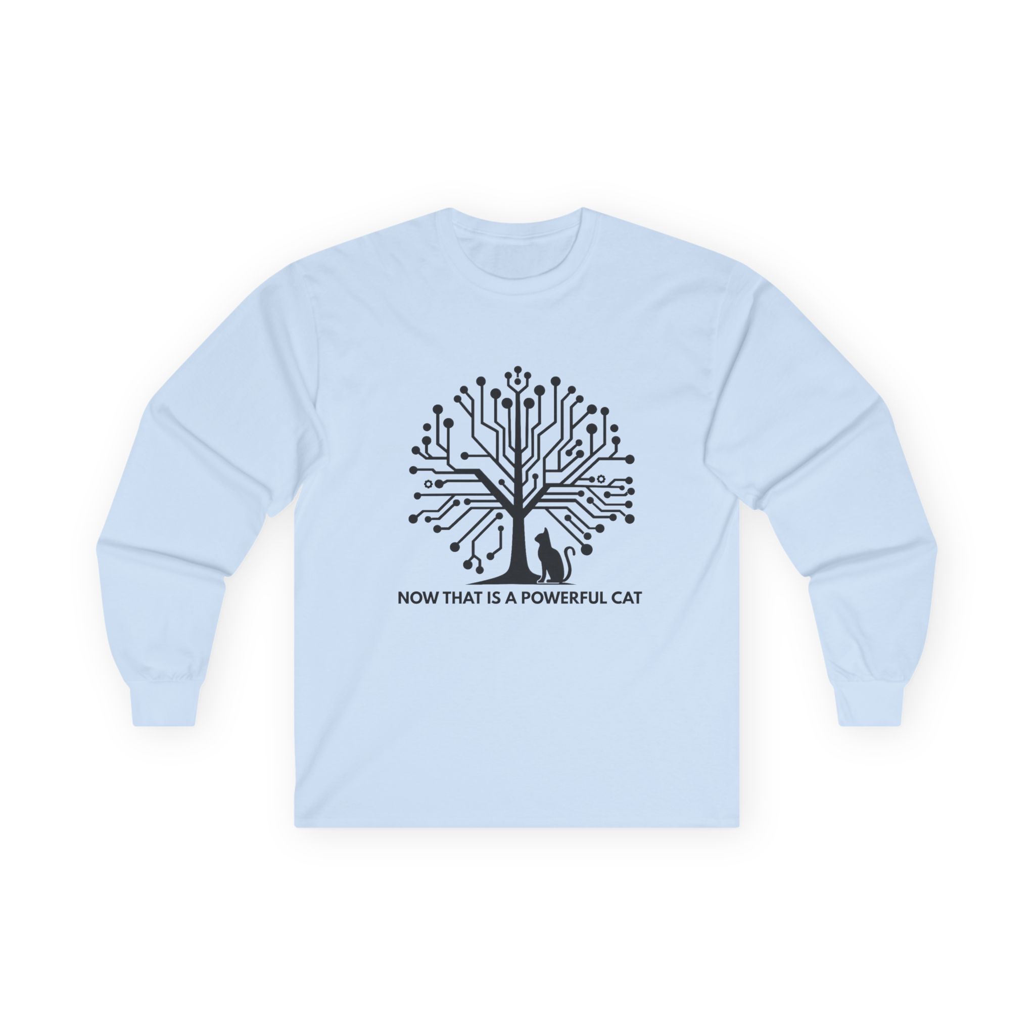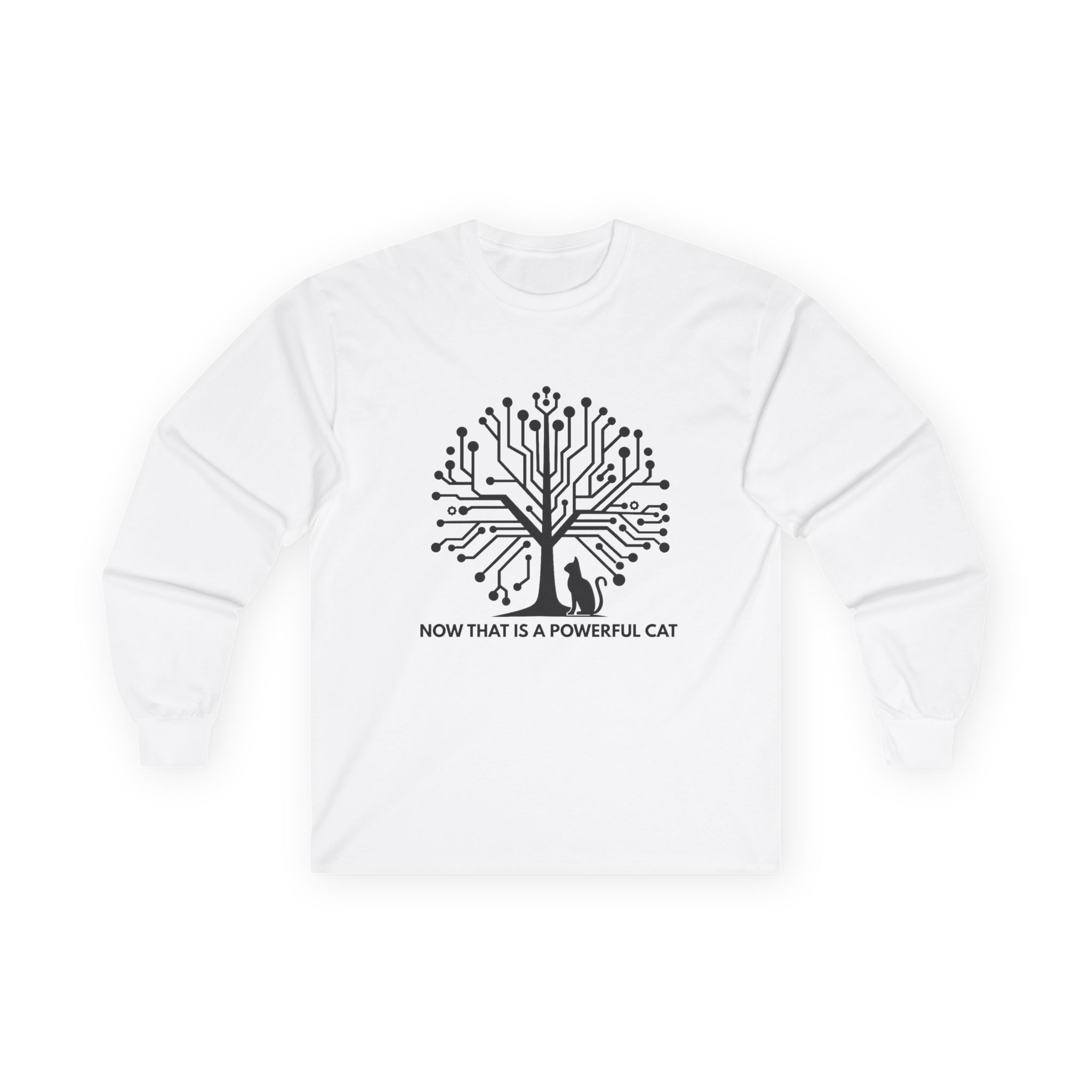 The Neural Tree Cat design transforms a bare winter tree into a living circuit board — branches become data pathways, nodes pulse like synapses firing across a neural network. And at the base of it all, completely unbothered, sits a cat. It’s a design that rewards the second look: part tech art, part philosophical statement, entirely wearable. It speaks to anyone who builds intelligent systems by day and comes home to a creature that’s somehow already smarter.