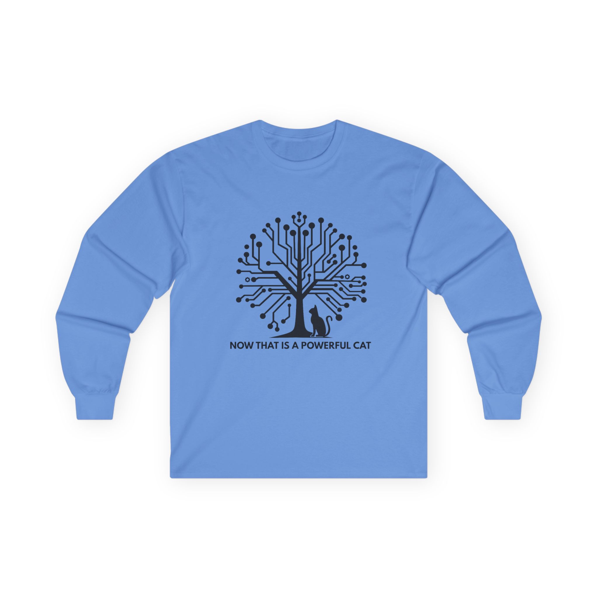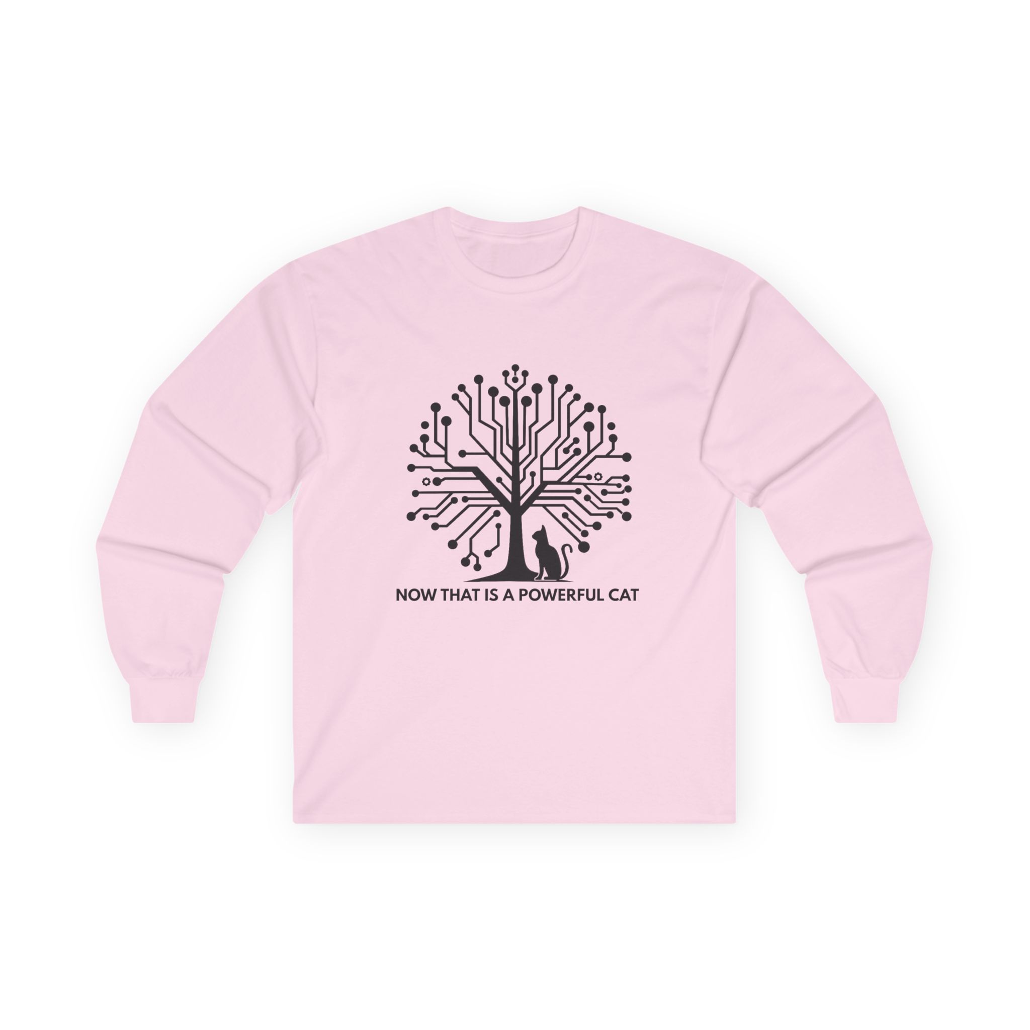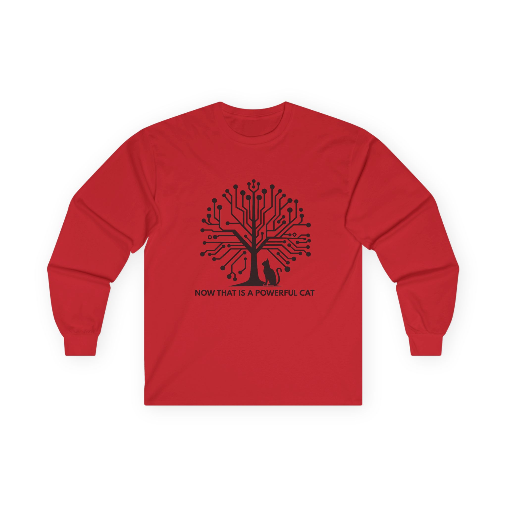 The Neural Tree Cat design transforms a bare winter tree into a living circuit board — branches become data pathways, nodes pulse like synapses firing across a neural network. And at the base of it all, completely unbothered, sits a cat. It’s a design that rewards the second look: part tech art, part philosophical statement, entirely wearable. It speaks to anyone who builds intelligent systems by day and comes home to a creature that’s somehow already smarter.