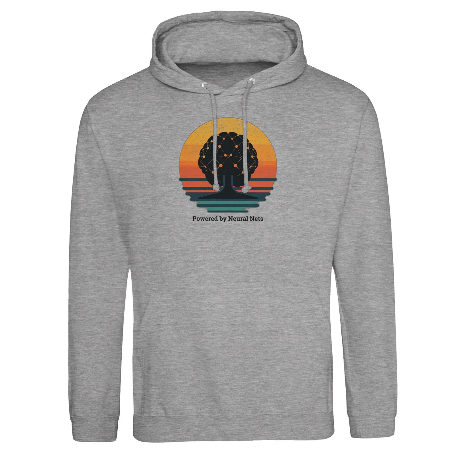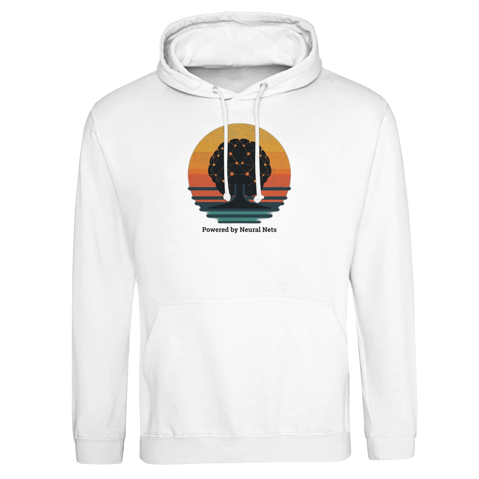 Show off your love for artificial intelligence with this neural network brain silhouette design. Minimalist retro sunset background + “Powered by Neural Nets” slogan make it a must-have for coders, data scientists, and future thinkers.