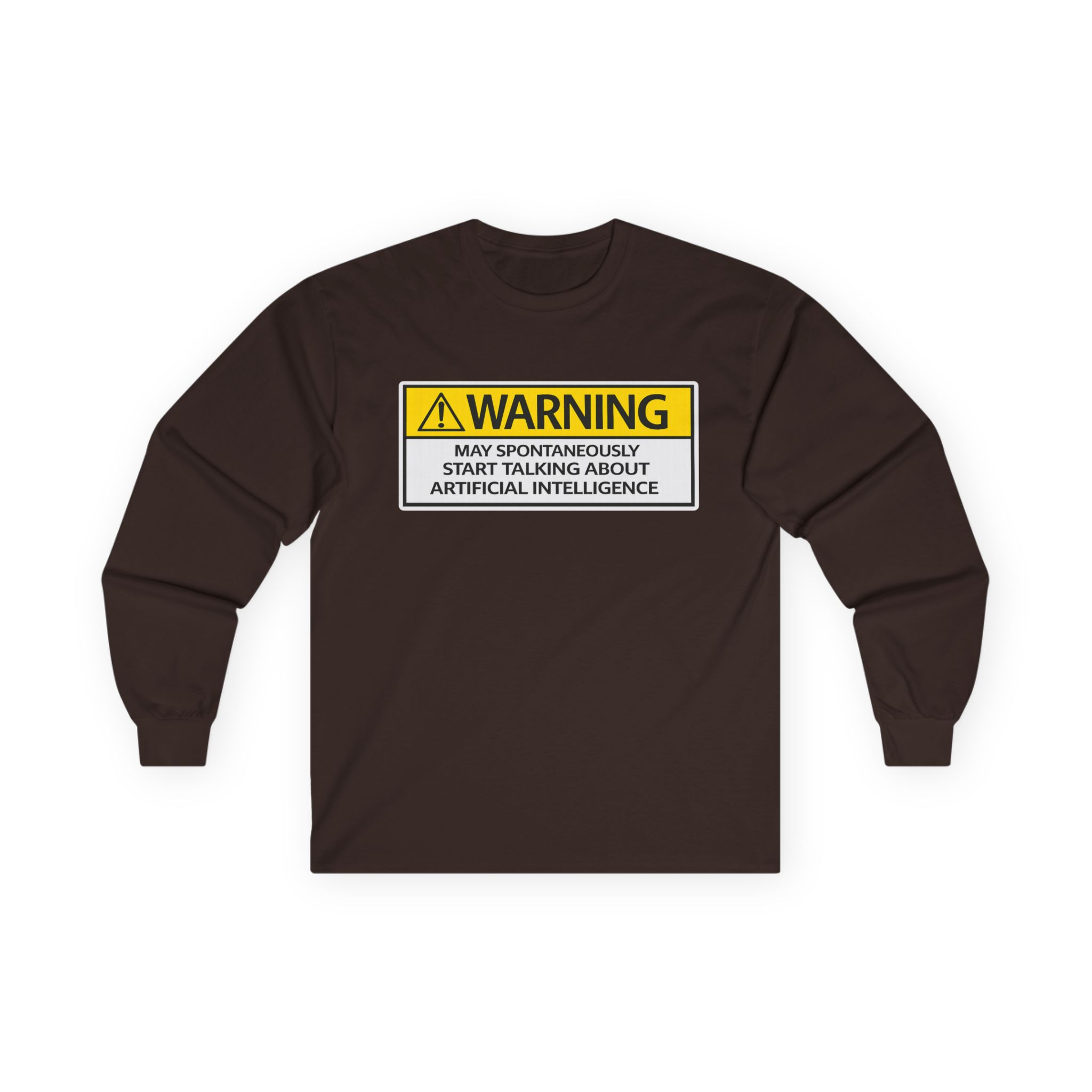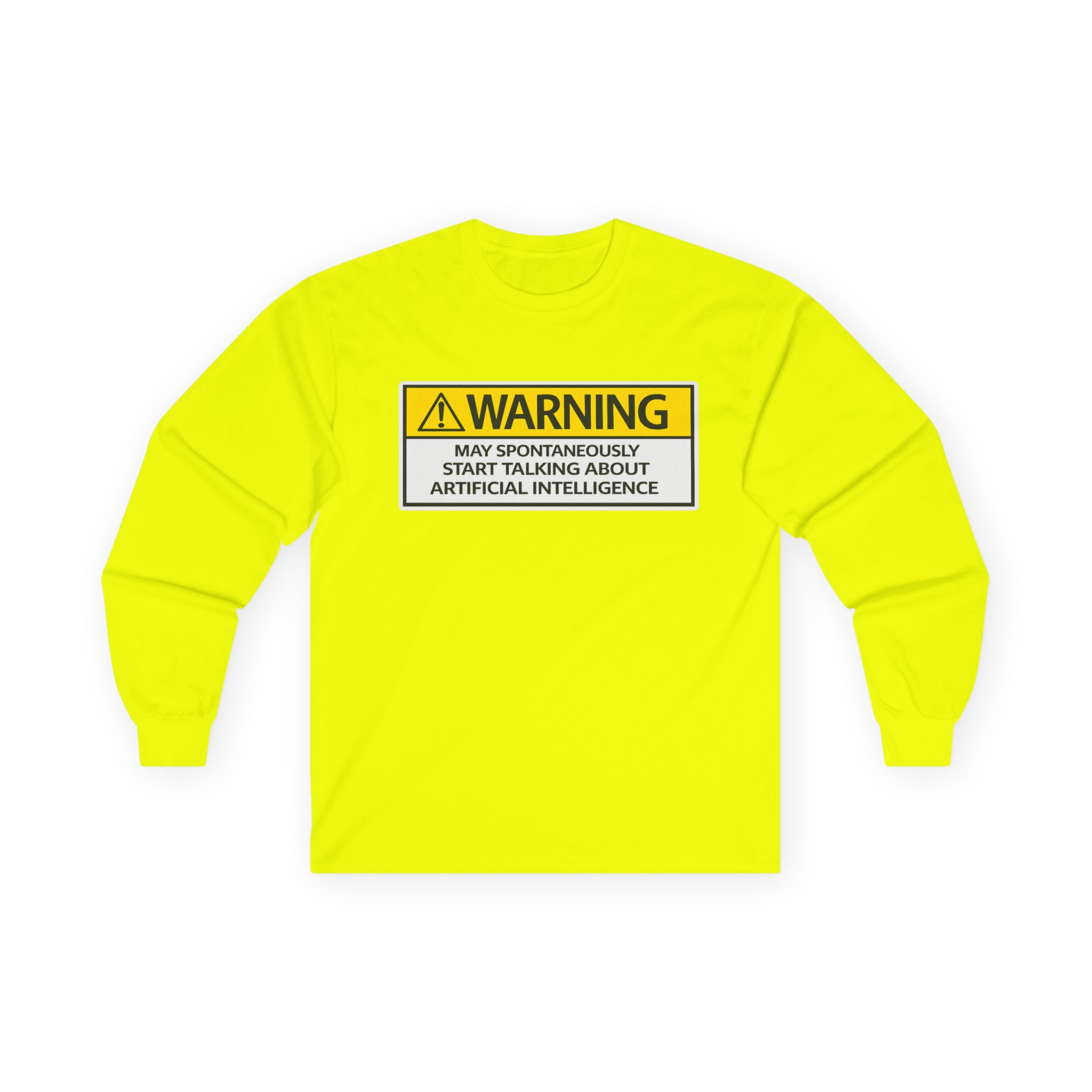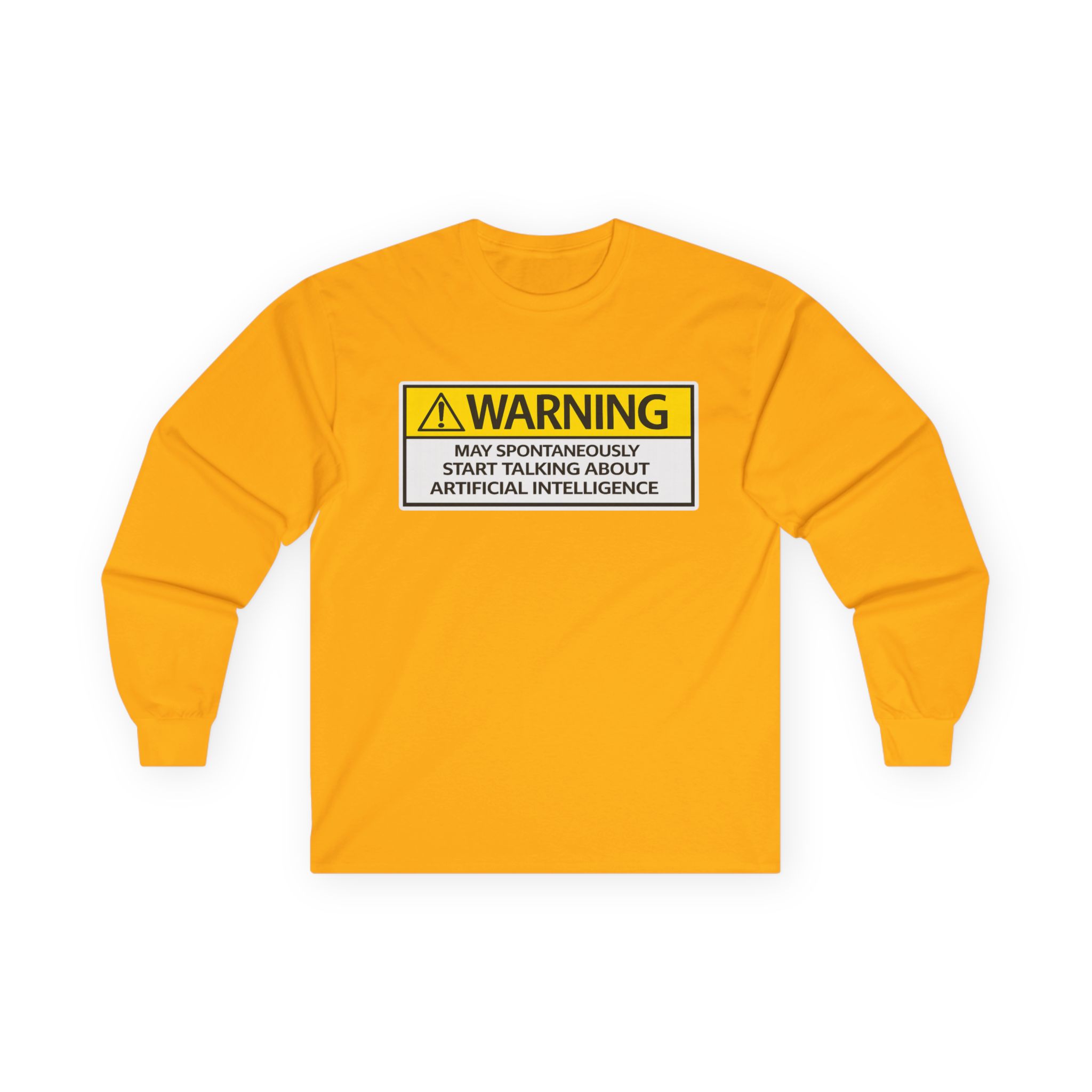 Warning: May Spontaneously Start Talking About Artificial Intelligence is the shirt that finally tells the truth — printed in the universal language of hazard signage. Bold yellow, high-contrast black, and the kind of deadpan delivery that lands instantly with anyone who’s ever derailed a dinner conversation with “but have you tried prompting it differently?” It’s a gift, a confession, and a fair warning all in one. Wear it so people know what they’re getting into.
