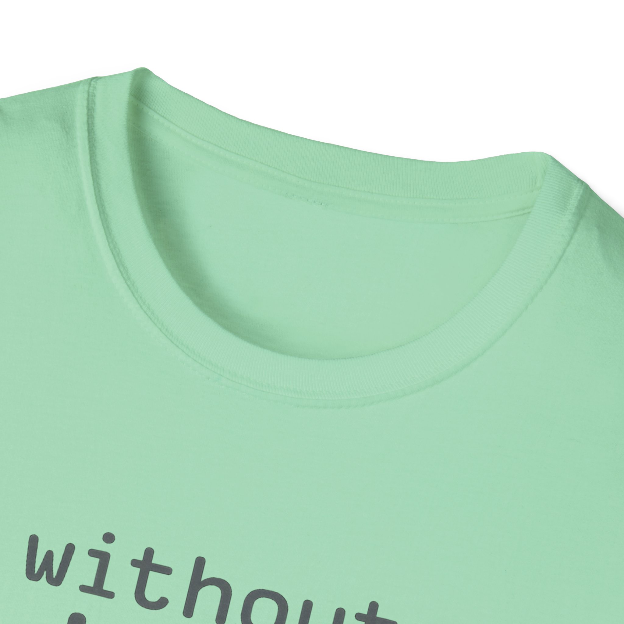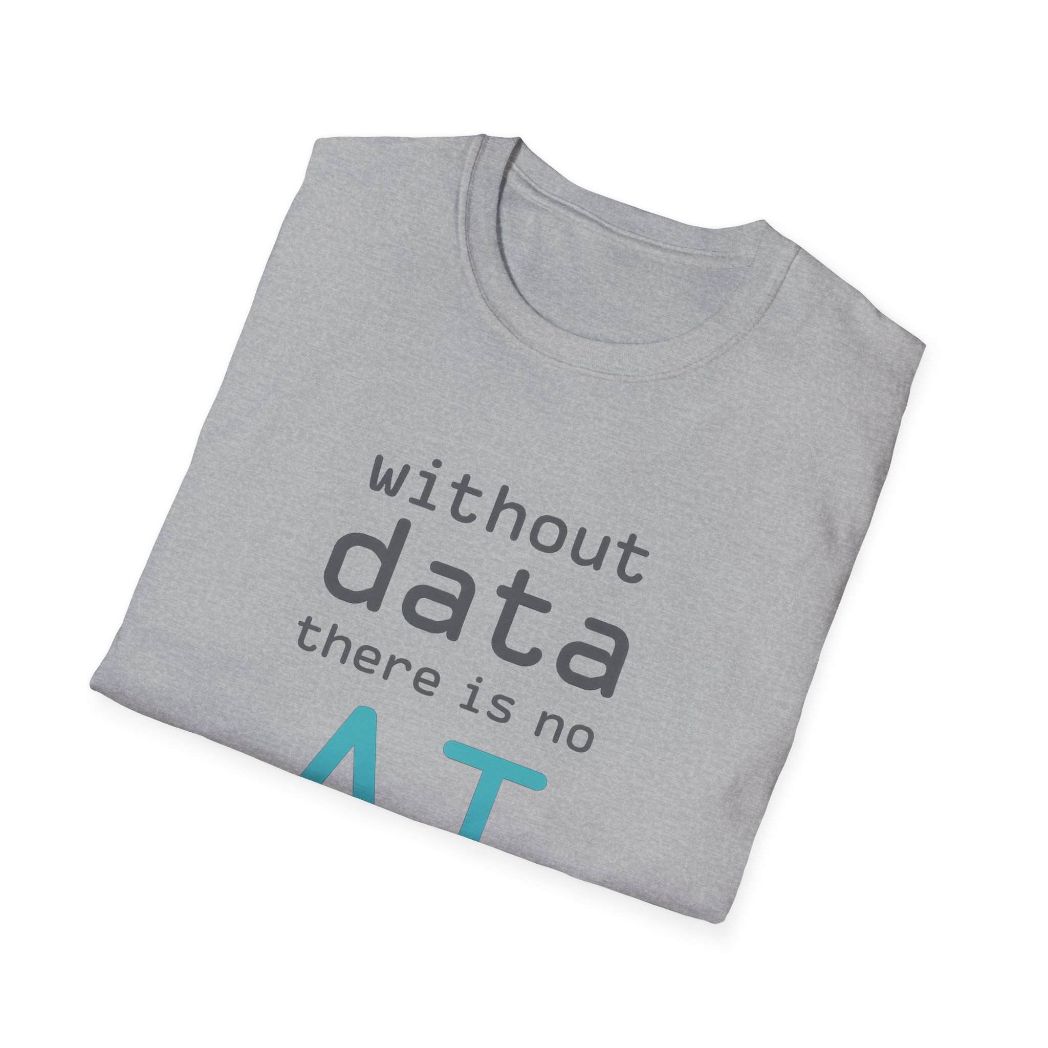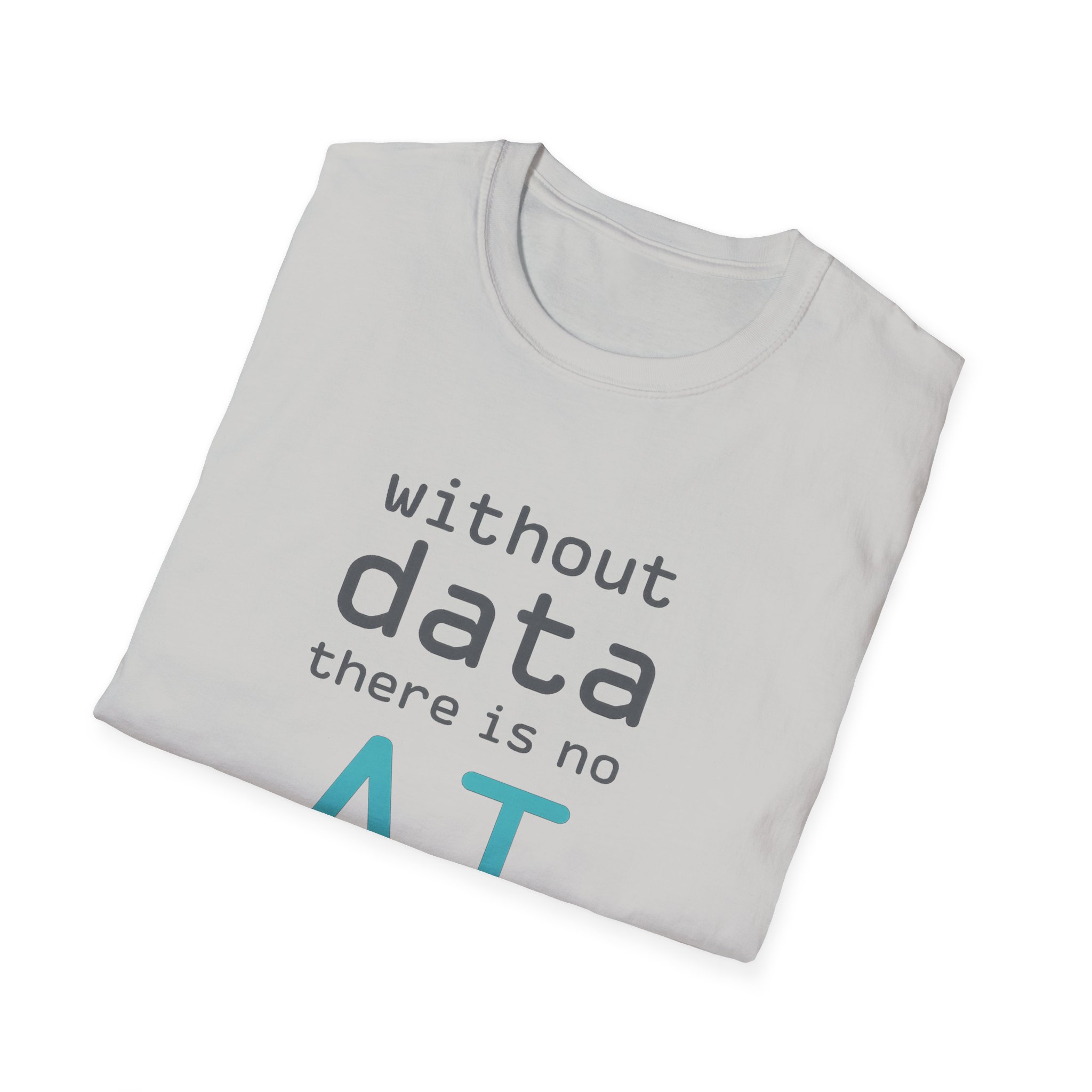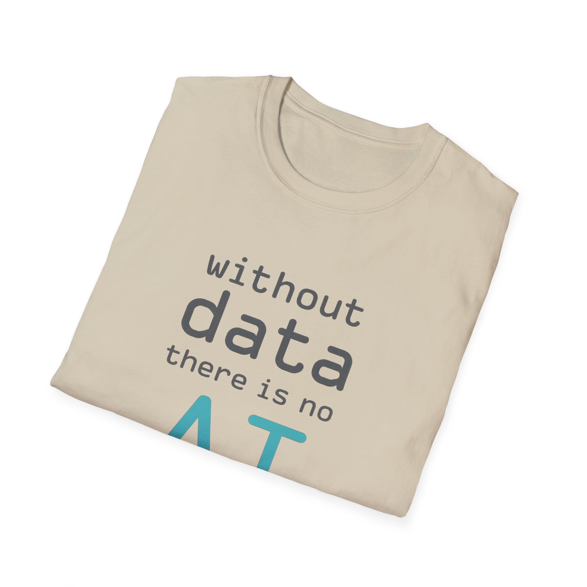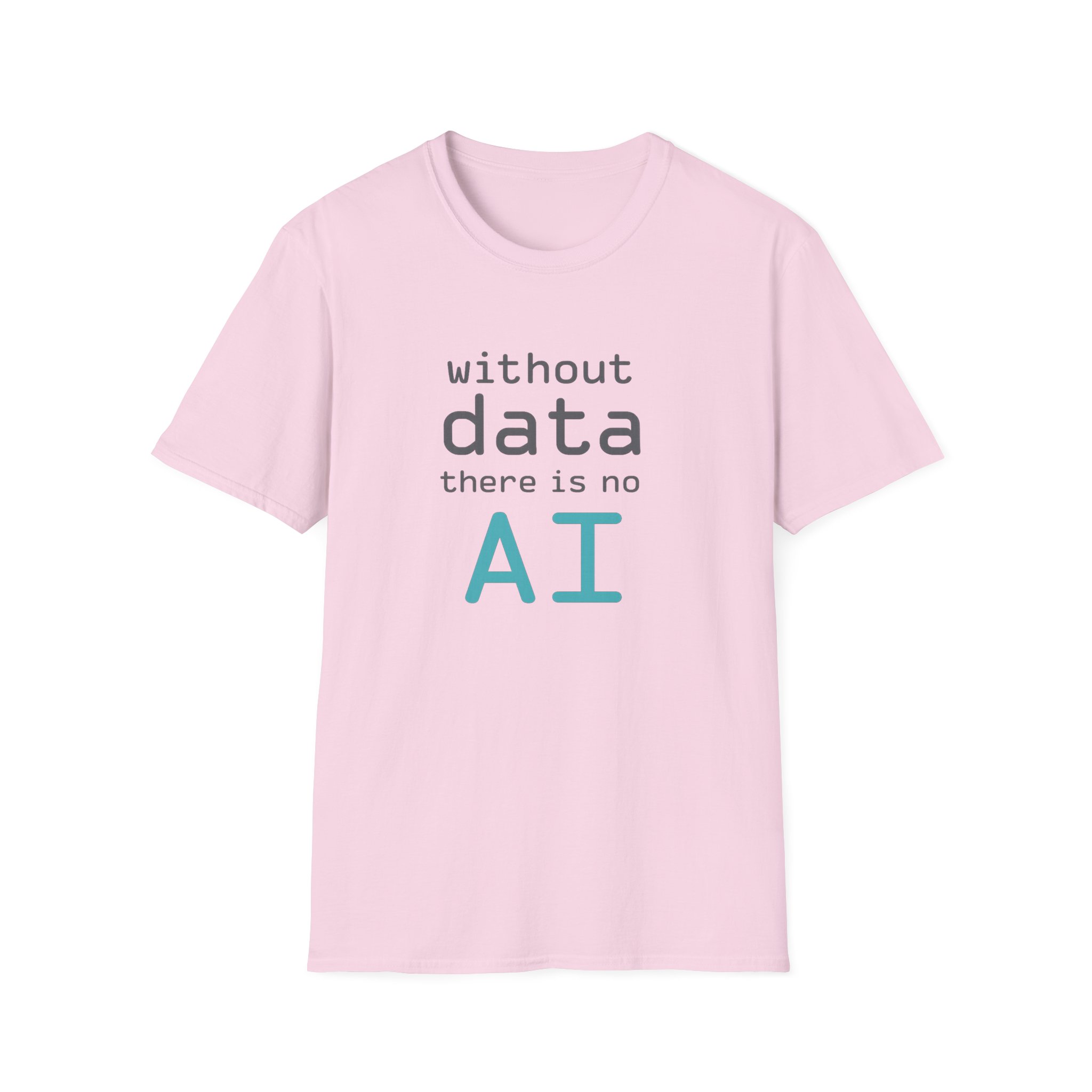 The typography does the argument in four lines. Grey to grey to grey — and then “AI” lands in electric cyan at the bottom like the payoff at the end of a very well-structured proof. Clean rounded monospace type. Minimal layout. Maximum correctness. This is the shirt for the person in every AI conversation who quietly knows which part of the stack everyone else is taking for granted — and has the SQL scars to prove it.